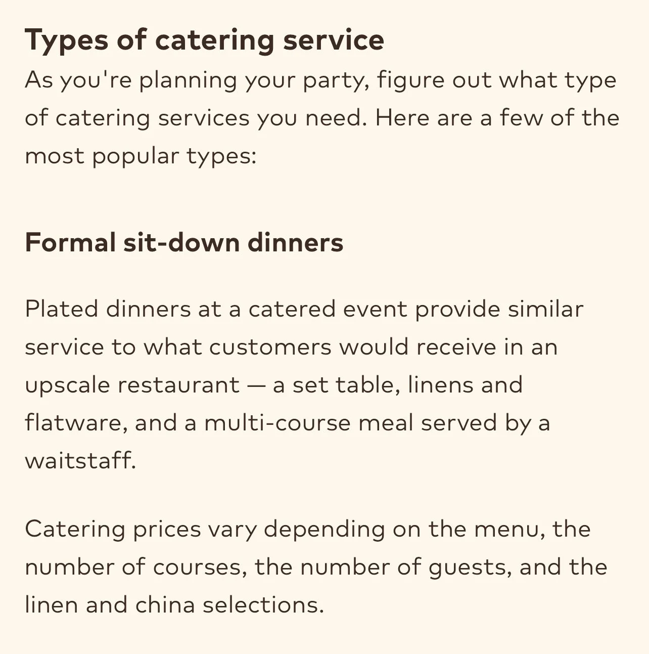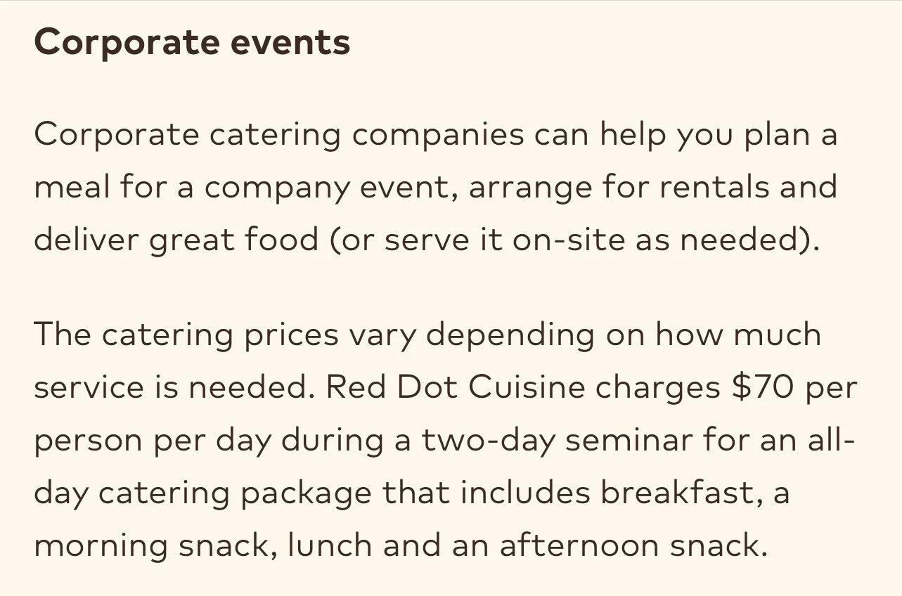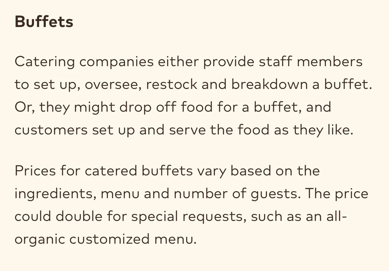 *Types of Catering Services/Price Per Person